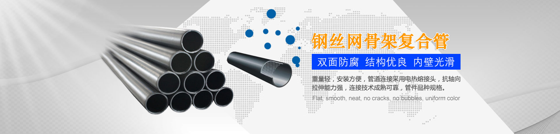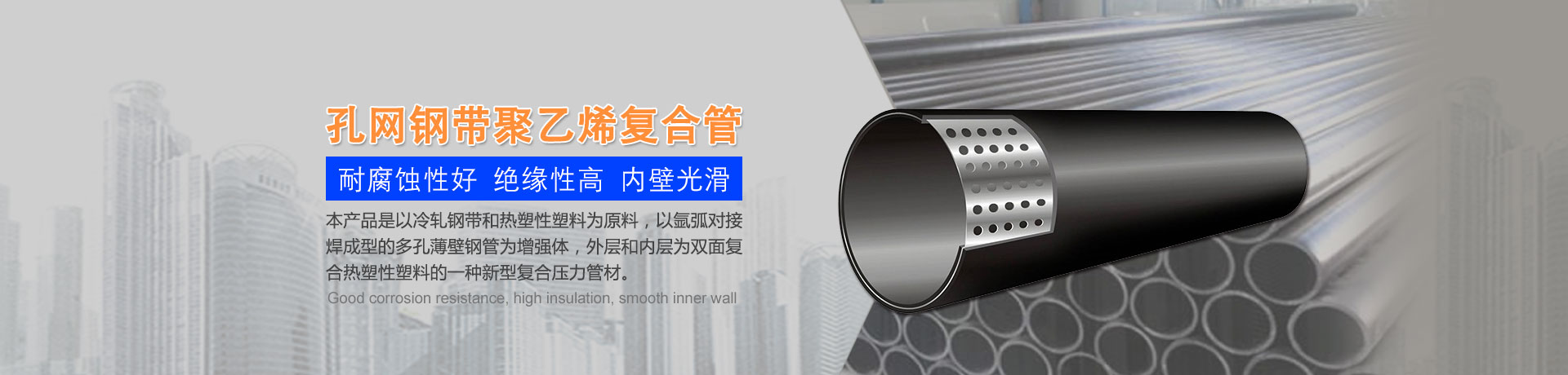 我們主要生產(chǎn)銷售:鋼絲網(wǎng)骨架復合管、鋼絲網(wǎng)骨架聚乙烯復合管、孔網(wǎng)鋼帶聚乙烯復合管、鋼骨架聚乙烯塑料復合管、電熔管件、HDPE中空壁纏繞管、HDPE內(nèi)肋增強螺旋波紋管、HDPE結構壁增強B型管等一系列產(chǎn)品。復合管以其特有的防腐蝕、耐磨、耐高溫、抗嚴寒、耐壓、抗蠕變、穩(wěn)定性好、安裝方便等特點,逐步取代各類金屬管件和塑料管件,被應用于消防、石油、化工、供水、采礦、海水輸送等領域...